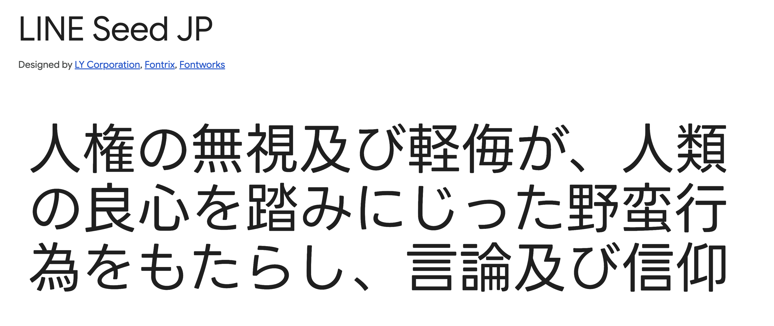 デザインのポイント:太めのウェイト(Extra Boldなど)を使って、短くキャッチーな見出しを作るのがおすすめです。欧文の「LINE Seed Sans」と組み合わせて設計されているため、英数字が混ざる文章でも、調整なしで美しく整います。